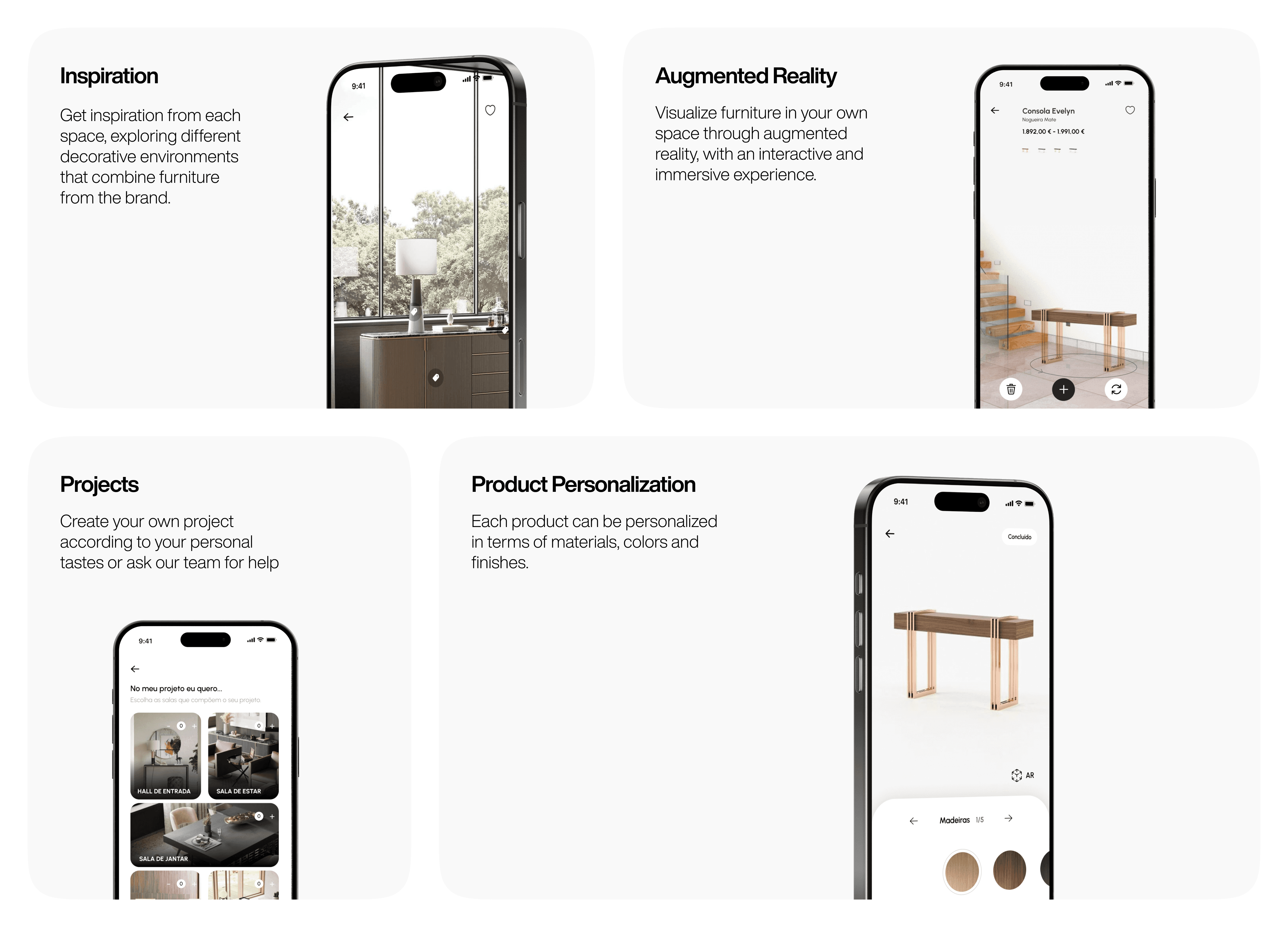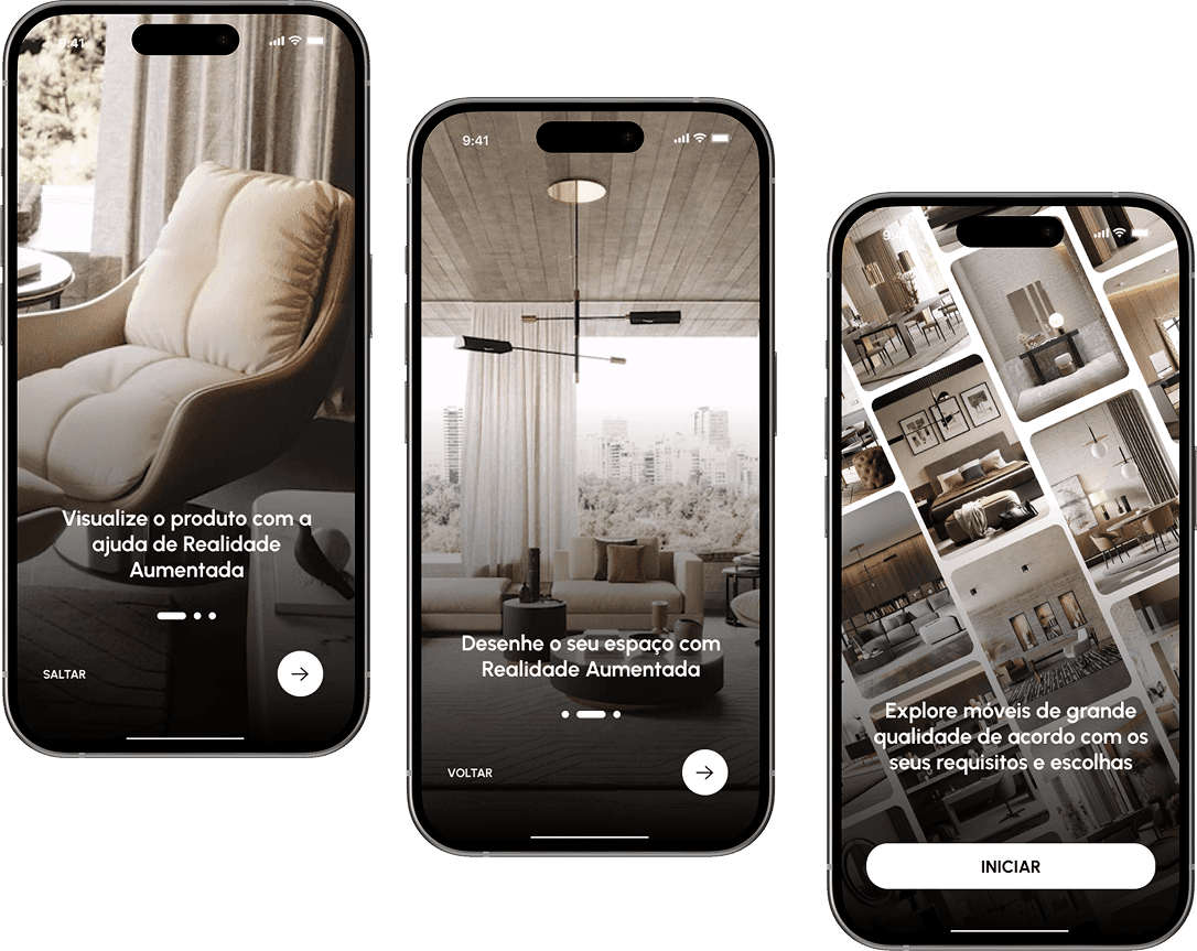 Taking this context into account, the application was developed with features that enhance the user experience, including the possibility of viewing products in Augmented Reality, customizing furniture to the user's taste and creating their own interior design directly in the application.